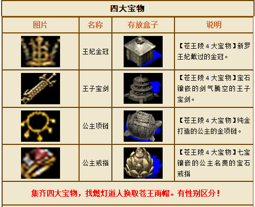 ——烬灯之谜:七将魂魄的归宿 在苍王焚山之战中,为了镇压九尾狐族的力量,苍王率领他的七位忠心耿耿的神将(阳刃王雄、阴刃王雪、冷判官冷傲、血魔手崔宁、赛愚公张弼、圣王剑安崇明、千手菩萨郭靖儿)与狐族展开了惨烈的战斗。虽然最终成功镇压了九尾狐族,但七神将在战斗中牺牲。苍王也在战后不久去世,他的追随者们为了纪念他并继续守护封印,建立了这座庞大的帝王陵墓。 苍王死后,七神将的魂魄被苍王封印在这座陵墓的第三层,继续守护着苍王的遗体和陵墓的秘密。随着岁月流逝,苍王时代的秘密逐渐浮出水面。你将深入这座神秘的王陵三层,探寻神秘王陵四大宝物,如果足够强大可以击败七神将的残魂,就能获取苍王系列护具和神将信物,并通过燃灯道人传送至苍王密室,追寻焚山的真相,杀死苍王的英灵就有几率获取苍王印玺,从而获得强大的苍王系列武器和衣服。此外,入侵三层忍王盗走了记载焚山真相的狐灵秘卷(上)卷,找到并杀死忍王,获取狐灵秘卷(上)卷。如果你可以集齐狐灵秘卷(上中下)三卷,把它交给王陵门口的雨中客,你就可以了解到焚山的真相和苍王的阴谋,顺便获取苍王战靴。 一、副本目标 1、击败入侵三层的东瀛忍王,寻找丢失的狐灵秘卷(上)卷。 2、寻找苍王控制七神将的残魂,试图解救他们。 3、寻找遗失的苍王兵符和王陵四大宝物。 4、在燃灯道人的帮助下,进入苍王密室,了解焚山真相。 二、任务奖励 1、狐灵秘卷(上)卷:用于了解焚山真相,王陵门口雨中客换取苍王战靴。 2、四大宝物:交予燃灯道人换取苍王雨帽。 3、苍王印玺:交予燃灯道人换取苍王系列武器。 4、兵符1-7:交予燃灯道人合成苍王玉牌。