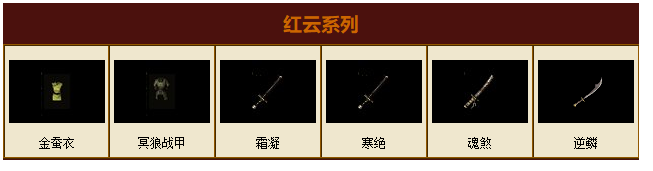 红云、黄龙、王陵、狐狸、苍王——五脉兵器如星辰列布,勾勒出江湖的起源、传承、宿命、隐喻与终焉,共同构筑了这片世界最深邃的传说。 一、红云系列 红云系列诞生于焚山之战前的和平年代,是人类与狐族共存时期的产物。其名源于“红云勇士”——那些在江湖中崭露头角的初阶侠客。九尾狐母曾以红云之力点化凡人,助其打造轻巧兵器,这些武器以轻便与实用性为主,适合初入江湖的侠客使用。虽品阶最低,但它们承载着人妖未分时的朴素信念,蕴含着江湖第一缕热血与信仰。 这些装备是侠客成长路上的第一步象征。这些武器装备虽不起眼,却因九尾狐母的点化而暗藏红云之力,成为人妖共融时代的最后回响。